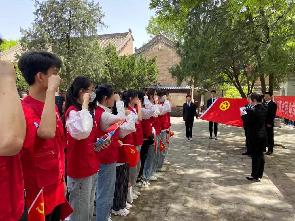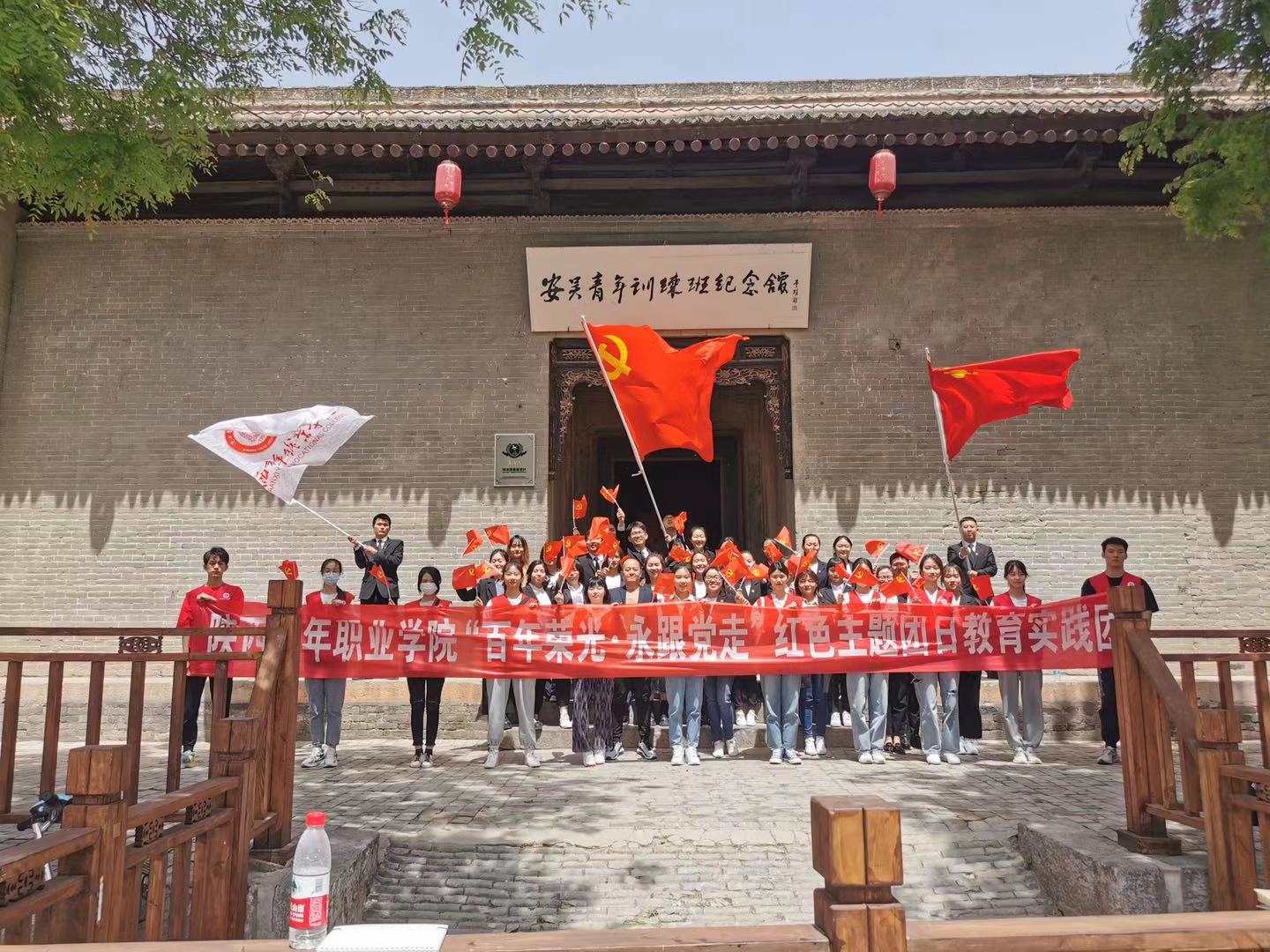4月30日,我院团学骨干代表和十四运会全体志愿者44名同学在院团委带领下,来到陕西泾阳县安吴青训班开展“学党史、强信念、跟党走”党史学习教育主题实践活动,学院党委组织部部长王安平受邀参加并讲话。