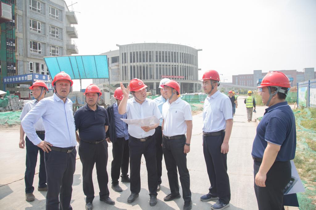段小龙一行首先来到新校区建设工地现场,实地考察和调研工程施工进度、现场管理、施工难点、质量安全等情况,并对奋战在建设一线的全体工作人员表示慰问和感谢。