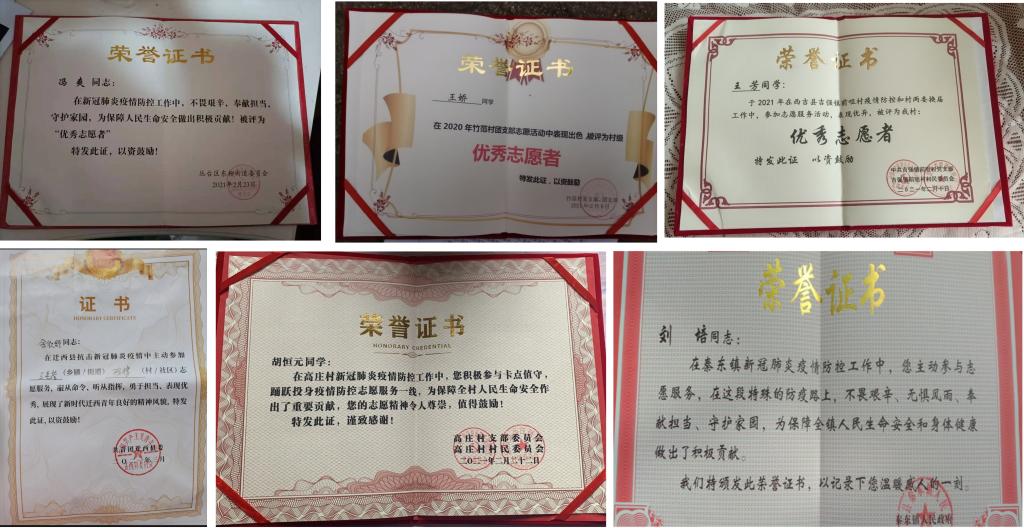 近日,公共事业系接连收到来自陕西省、甘肃省等地县镇村政府发来的函件和证书,4名学生获评“优秀志愿者”,4名学生受到表彰。