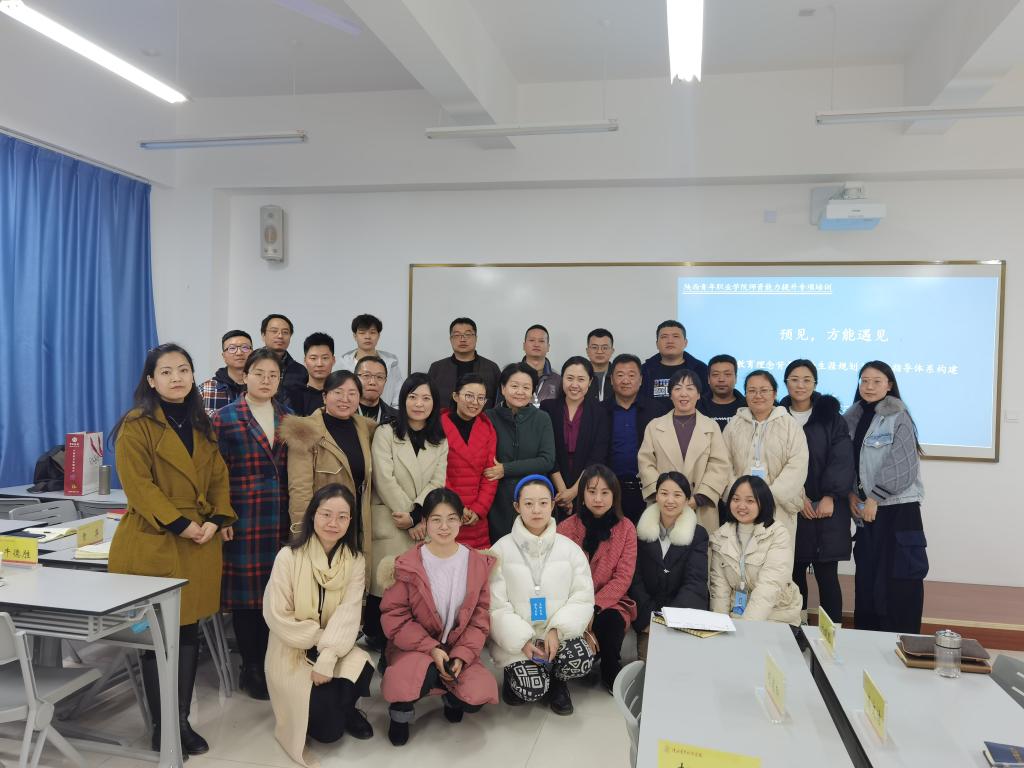 11月26日,学院2021年就业指导能力提升培训会在长安校区举办。副院长刘晓琴出席,全国生涯规划专家委员会生涯规划认证专家、国家高级(一级)职业指导师、国家高校就业创业导师、陕西省人才交流中心就业创业导师、西安培华学院学生潜能发展中心主任韩赟受邀到会授课,招生就业处副处长徐学海、各系学生工作负责人、全体任课教师等近30余人参会。会议由就业指导教研室主任卜建丽主持。