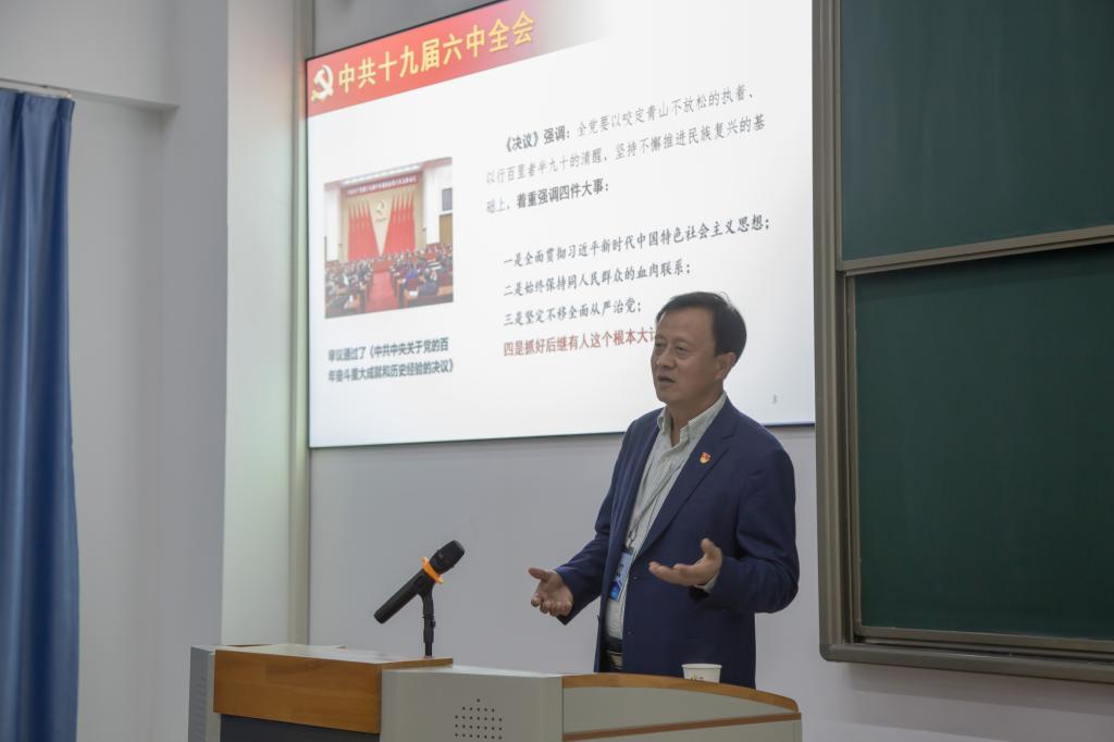 接着,温锋科着重围绕习近平总书记在党的十九届六中全会上的重要讲话精神和《中共中央关于党的百年奋斗重大成就和历史经验的决议》,重点阐明召开党的十九届六中全会的重大意义,系统讲述党百年奋斗的初心使命、辉煌历程和重大成就,重点讲解中国特色社会主义新时代历史性成就和历史性变革,深入阐释党百年奋斗的历史意义和历史经验,为广大师生深入学习领会党的十九届六中全会精神作了有力动员。在讲课中,温锋科结合我院学生的学习生活实际,注重将理论与实际相结合,增强了课堂讲授的针对性、实效性。温锋科指出做担当民族复兴大任的时代新人要有爱国情怀,要把报效祖国、服务人民当作一种理想;要有社会责任感,把崇德向善、奉献社会当作一种追求;要有创新精神,把敢于开拓、勇于创新当作一种责任;要有实践能力,把顽强拼搏、艰苦奋斗当作一种锤炼。