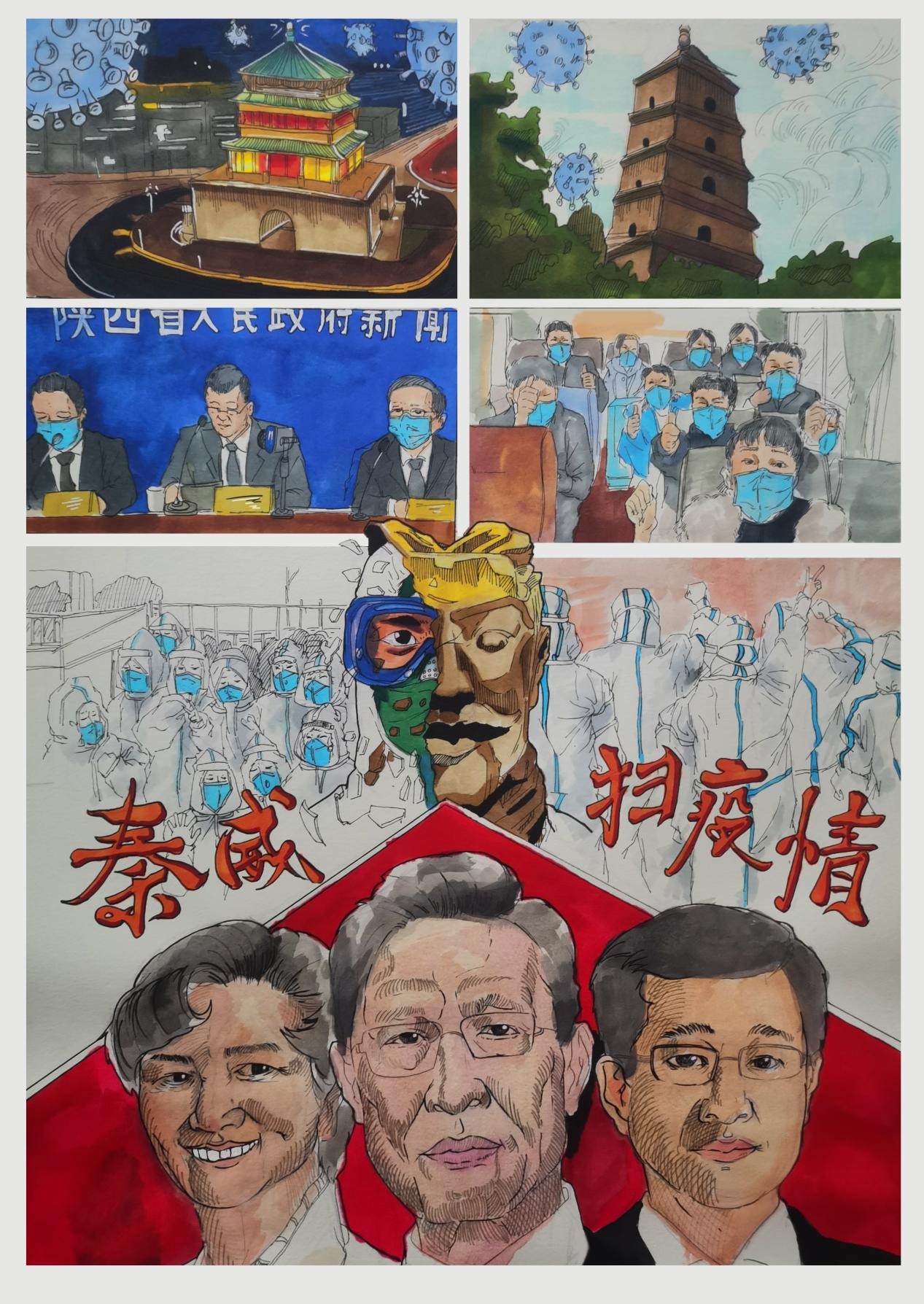疫情当前,数字信息技术系的同学们在学校用画笔绘制出无声的“语言”传递爱的力量。同学们将自己的热血、希望、感恩化作一幅幅艺术作品,为这场“战疫”中平凡又伟大的人们加油,齐心协力共同打赢这场与病毒之间的战争。同时也希望通过这种方式引领陕青学子在学习生活中,保持积极阳光的生活态度,勇于担当青年责任。(数字信息技术系供稿)