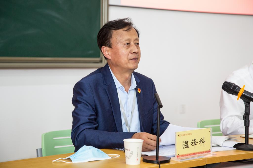 党委书记温锋科以“全面从严治党引领保障改革发展顺利进行”为主题做了讲话:一是全面从严治党是新时代党自我革命的伟大成功实践,我们必须深刻理解。要深入学习习近平总书记在中纪委六次全会上的重要讲话,深刻认识“六个必须”是对新时代党的自我革命成功实践的深刻总结,为新的伟大征程上始终坚持自我革命、坚持不懈把全面从严治党向纵深推进提供了重要遵循。二是全面从严治党是新时代党自我革命的伟大成功实践,我们必须真正践行。要把全面从严治党与校院平稳顺利发展结合起来,在党风廉政建设与反腐败斗争、立德树人与意识形态、教育教学与学生管理、政务服务与后勤保障、疫情舆情与安全稳定中查漏补缺,认真反思。主动适应新常态下全面从严治党工作的新形势和新要求。三是全面从严治党是新时代党自我革命的伟大成功实践,我们必须纵深推进。一要以政治建设为引领,坚定不移用党的创新理论铸魂育人。二要强化基层党组织建设,发挥基层党组织政治功能,提高全面从严治党质量。三要继续加强作风建设,严格贯彻落实中央八项规定精神,持续用力纠“四风”树新风。四要以纪律建设为支撑,推进不敢腐、不能腐、不想腐,坚定不移正风肃纪反腐。五要坚决落实管党治党责任,切实做到真管真严、敢管敢严、长管长严。