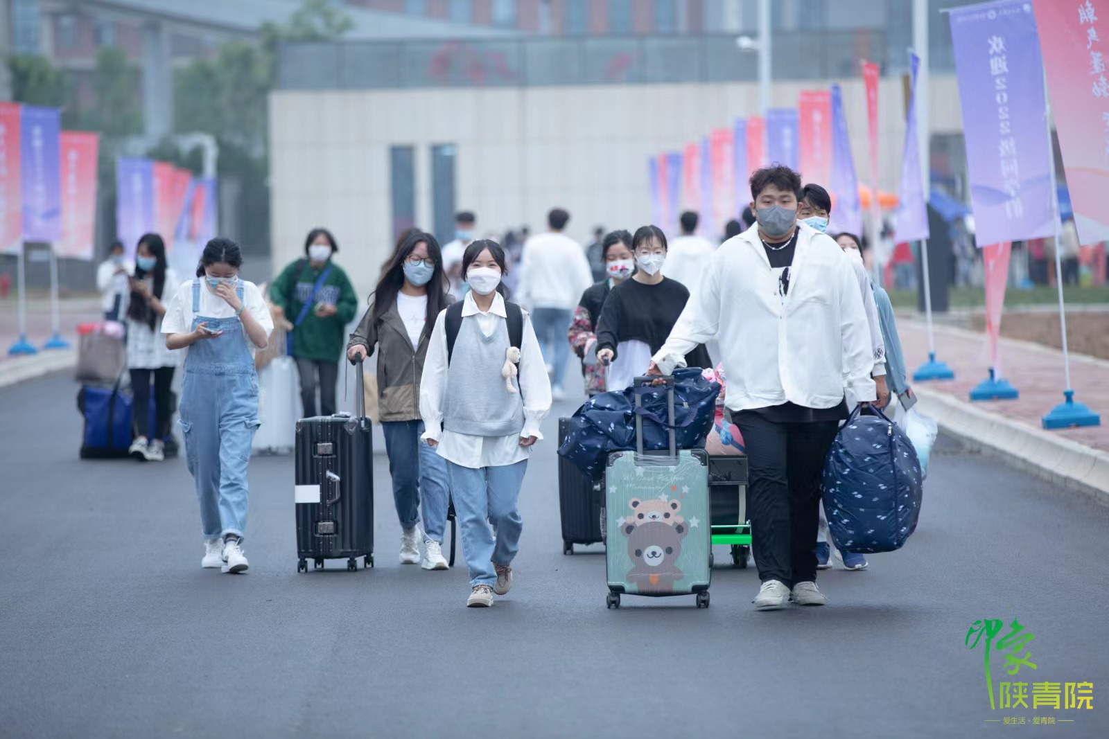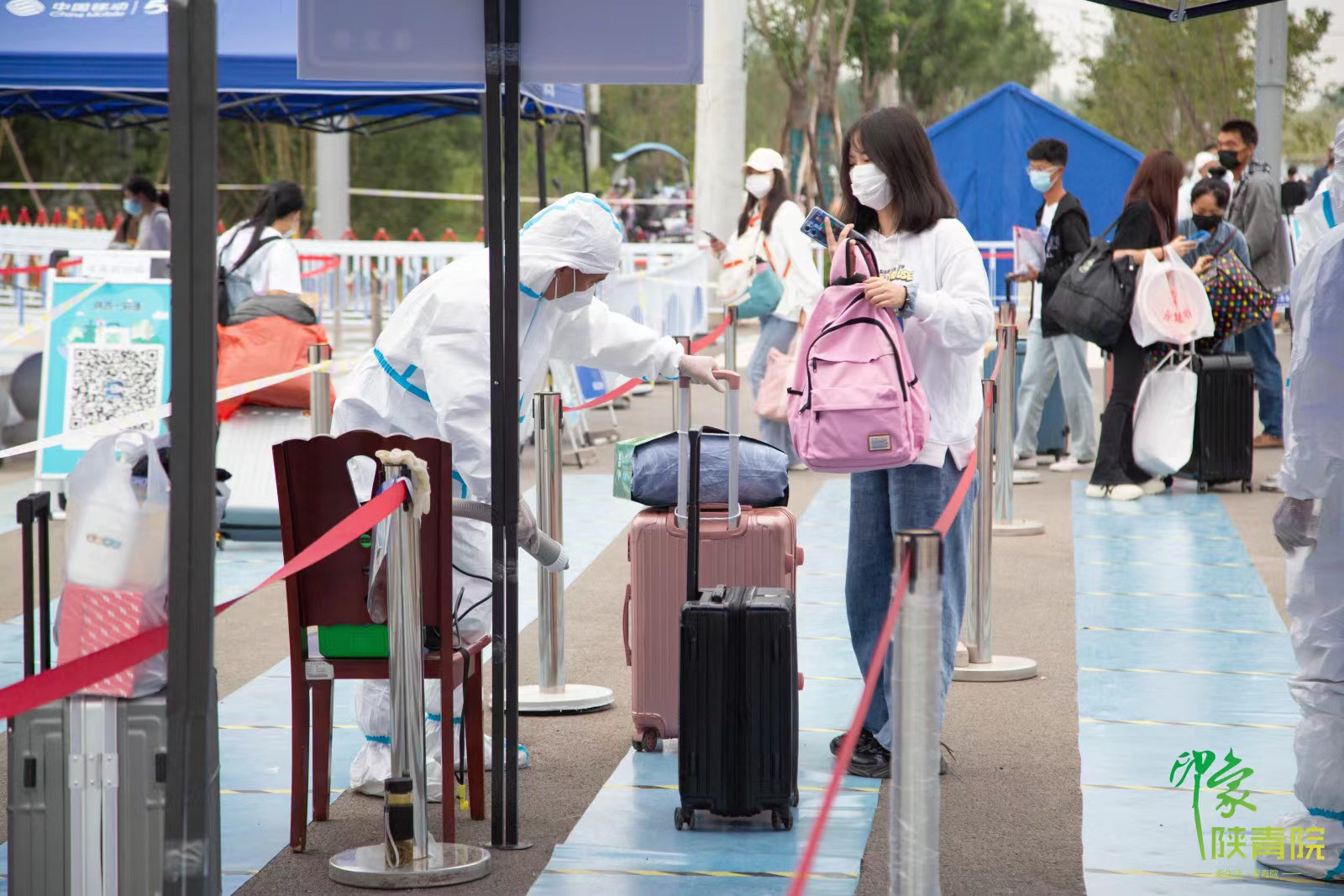 在新生报到现场,颜色鲜艳的横幅迎风飘扬,醒目清晰的指示牌随处可见,迎新帐篷整齐摆放,同学们排队依次经过行李消杀、信息查验、体温检测等各环节有序入校,在学生志愿者的热心帮助和耐心引导下,至指定地点办理报到手续,并进行核酸检测,随后前往学生公寓入住。各工作环节衔接紧凑,各岗位工作人员密切配合,为学生们提供了人性化、便捷化的服务,带给同学们属于陕青职院的关怀和温暖。同时,学院准备了足量的口罩、体温计、消毒湿巾、洗手液等防疫用品,切实保障学生健康安全。学院也通过新媒体平台对新生报到情况进行了全程图片直播。