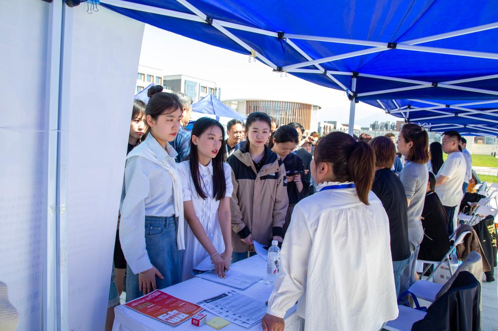 本次招聘会专门设立了政策宣传、就业指导、岗位推荐、应征入伍政策宣传、访企拓岗校企洽谈、综合服务处等展位,为参会毕业生提供一站式就业咨询服务。据会后统计,本次招聘会毕业生现场投递简历3413份,面试2051人,初步达成意向877人。现场对毕业生开展就业指导100余人次,毕业生咨询应征入伍政策200余人次,发放应征入伍宣传资料600余份。