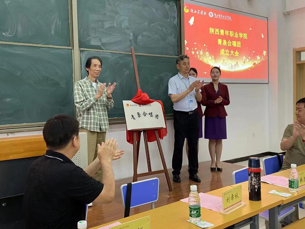 韩凯军和陕西省合唱协会会长刘希秋一起为合唱团揭牌。盛林介绍了合唱团成立的初衷,宣读了合唱团的章程并确定了排练曲目及安排,之后呼吁合唱团团员永葆热爱合唱的初心,共同唱响新时代的逐梦凯歌。