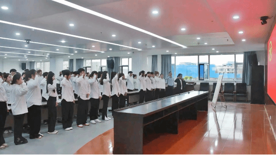 团委严格依据共青团中央办公厅发布的《中国共产主义青年团入团仪式仪程规范(试行)》要求,严把入团关口,规范入团程序,组织开展2024年新发展团员入团仪式,集中学习《中国共产主义青年团章程》,学唱团歌,举行团旗下宣誓,切实增强广大团员青年的荣誉感和自豪感,引导团员青年积极发挥先锋模范作用,为推动校(院)高质量发展贡献青春力量。