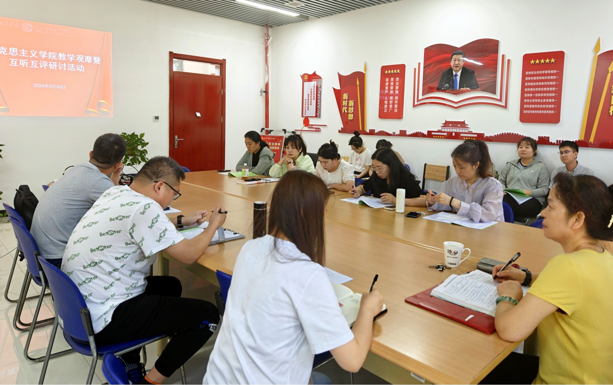 据悉,自3月份以来,马克思主义学院相继开展了毛泽东思想和中国特色社会主义理论体系概论和习近平新时代中国特色社会主义思想概论课教学观摩(公开课)与教学研讨系列活动。校(院)班子成员先后走进思政课堂听课指导。