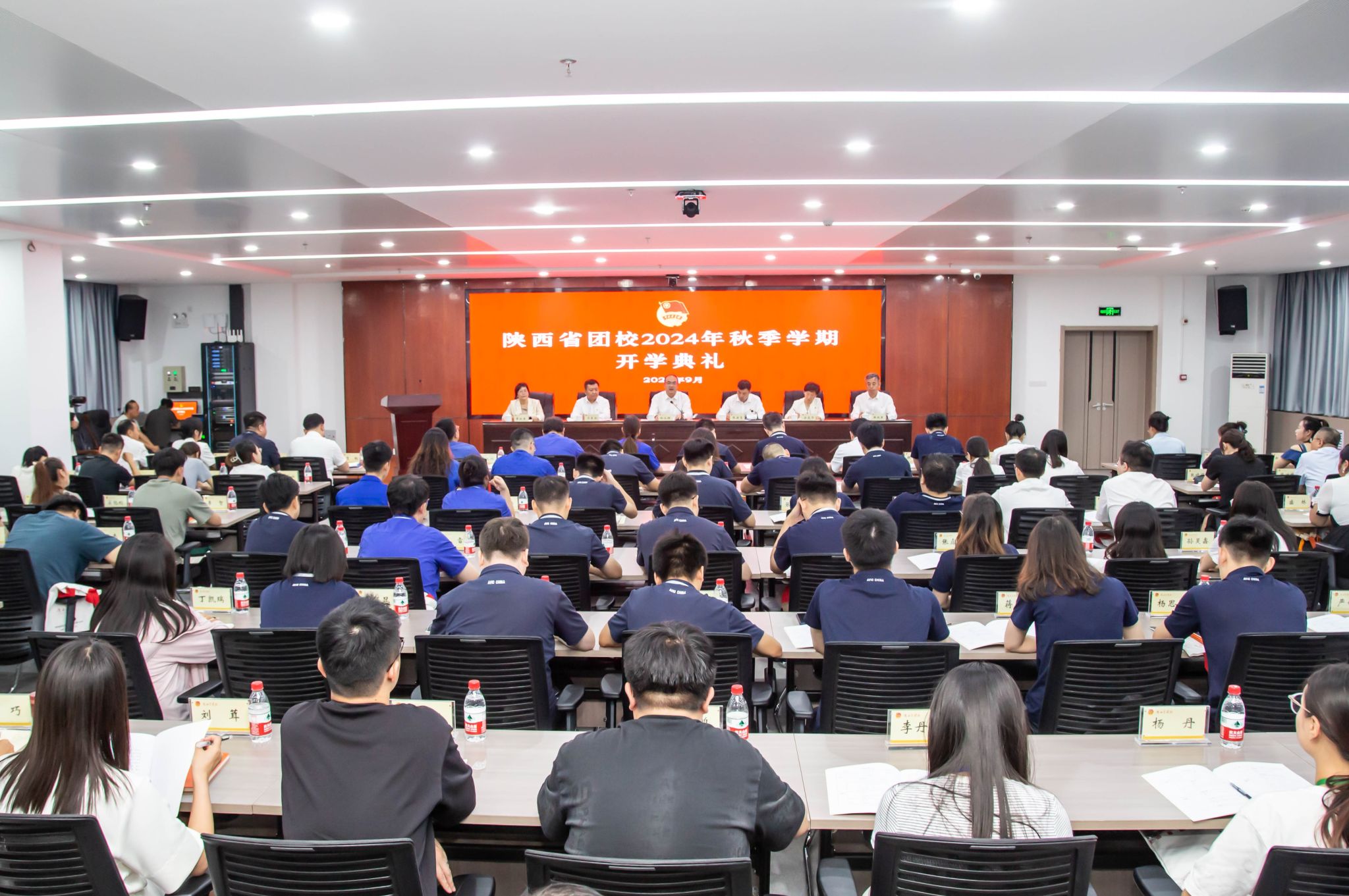 陕西省团校领导班子全体成员、中层干部、教师代表及“西安市长安区团干部培训班”、“学习宣传贯彻党的二十届三中全会精神专题团干部培训班”、“2024年吴堡县团(队)干部能力素质提升培训班”、“2024年千阳县团(队)干部能力素质提升培训班”全体参训学员等120余人参加开学典礼。