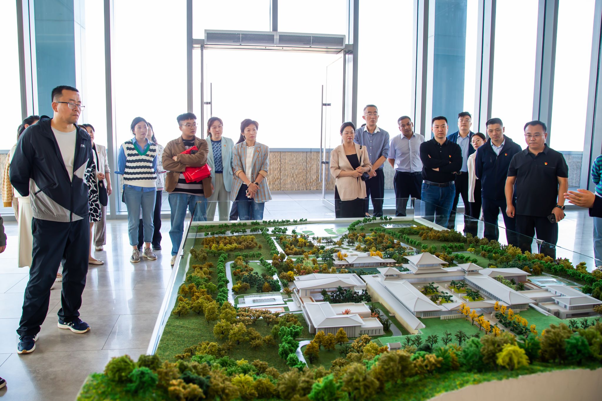 在讲解员的带领下,全体党员了解了版本馆“一总三分”的总体布局,以及项目建设、规划设计、建筑特点、收藏版本等情况。