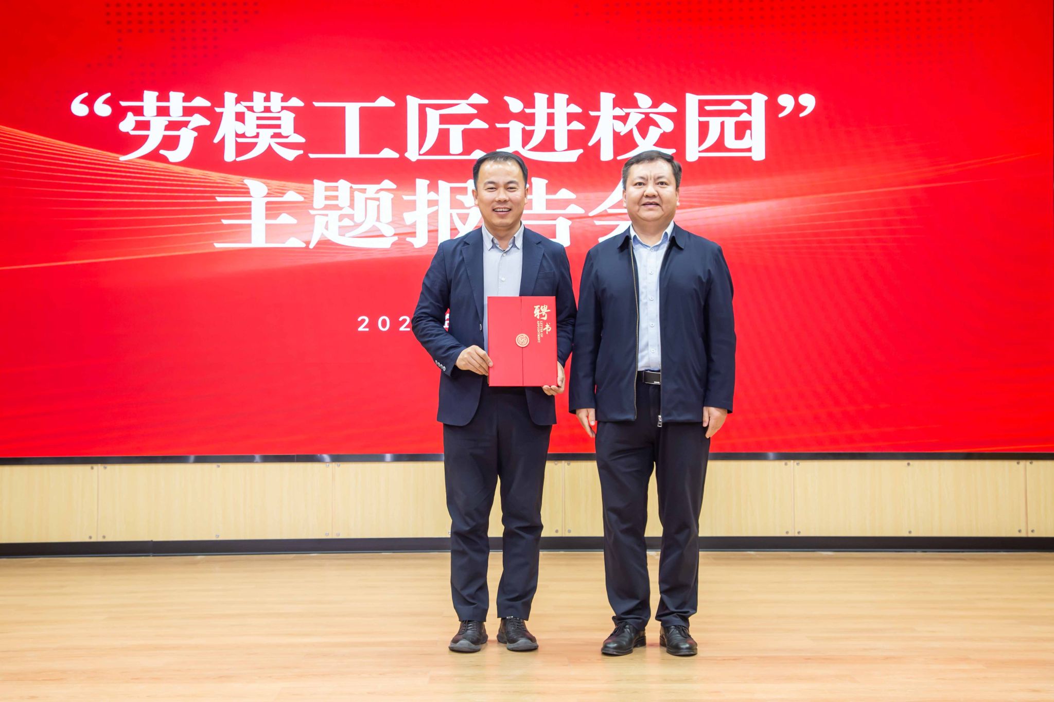 为深入学习贯彻党的二十届三中全会精神,庆祝中华人民共和国成立75周年,大力弘扬劳模精神、劳动精神、工匠精神,10月23日,由党委宣传部主办,学工部、团委、马克思主义学院协办的“劳模工匠进校园”主题活动在长安校区报告厅举行。
