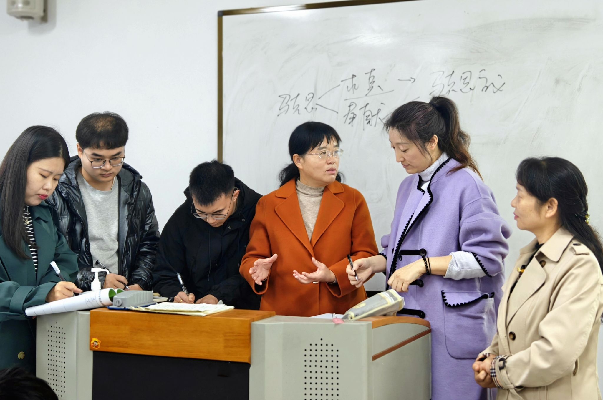闫红茹走进思政课教师方方的“思想道德与法治”课堂听课,并在课后进行了认真精准的指导。她充分肯定了方方老师的教学设计、专业素养和综合能力,指出教师课堂准备充分,理论讲解深入浅出,注重运用问题式教学,通过与学生互动,环环紧扣引导学生思考、理解知识点,有助于提高学生的逻辑思维能力和解决问题的能力。并就课堂中存在的不足提出了宝贵的意见和建议。随后,闫红茹教授参观了点点官网马克思主义学院教学工作环境、大思政建设文化墙,了解了马克思主义学院的发展历程,并就思政课建设、教师培训,人才培养等提出了有益的经验分享。