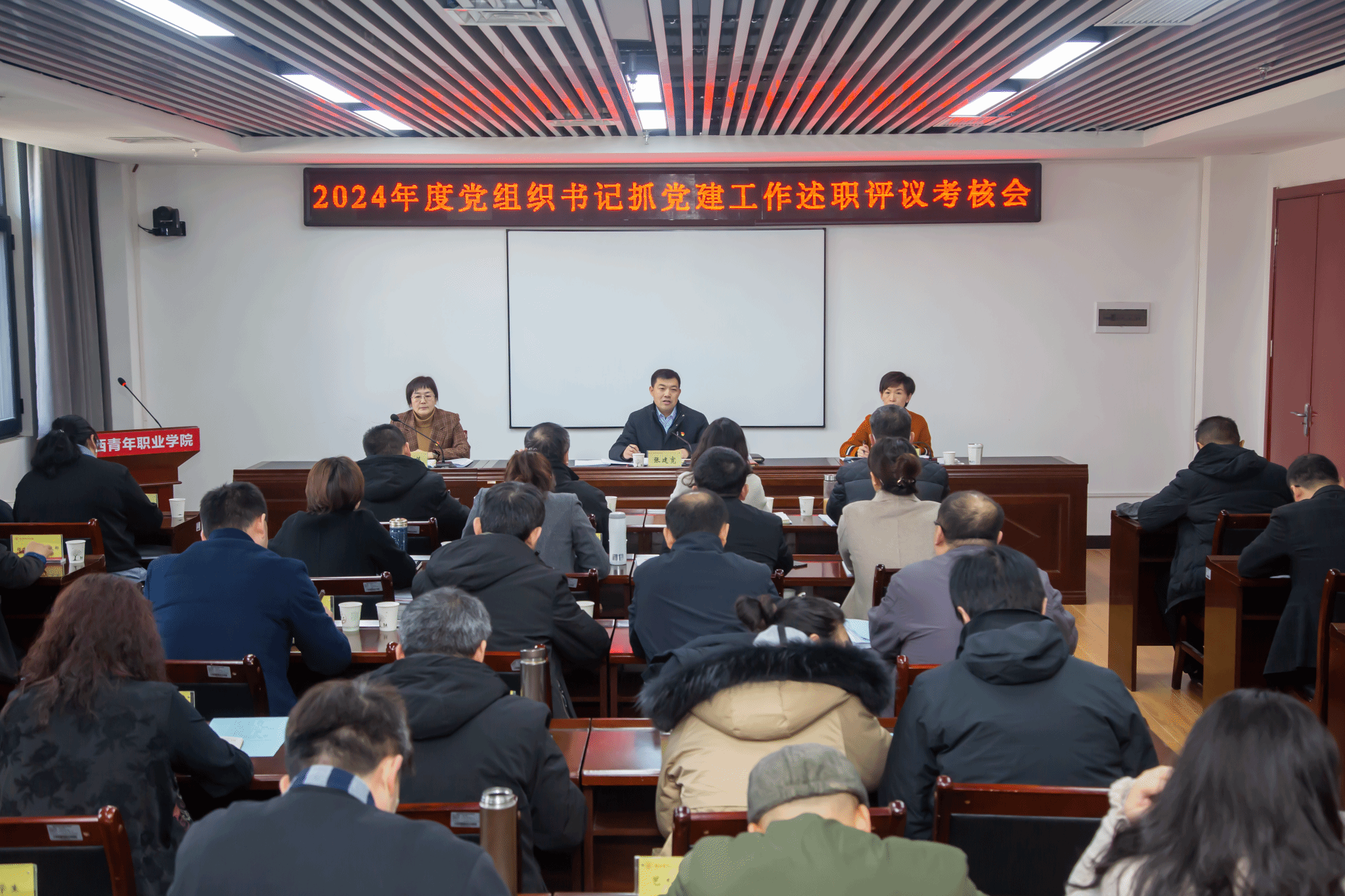 1月8日,学校召开2024年度党组织书记抓党建工作述职评议考核会议。党委书记张建宽,党委副书记梁菀华,党委副书记、纪委书记薛红萍出席。各党总支、直属党支部、党支部书记参加。会议由梁菀华主持。