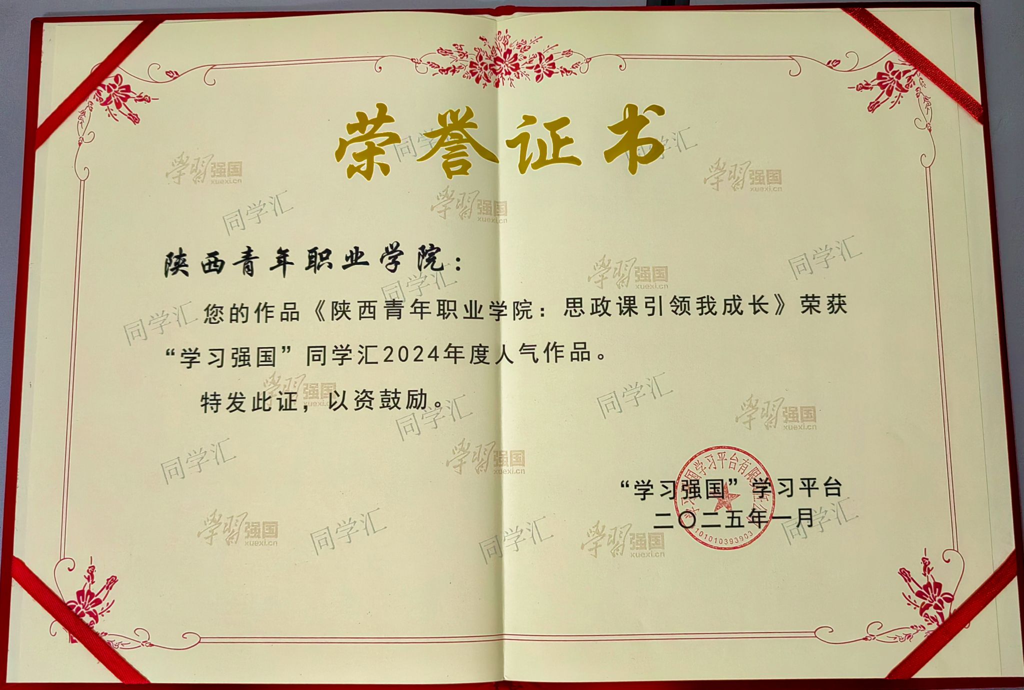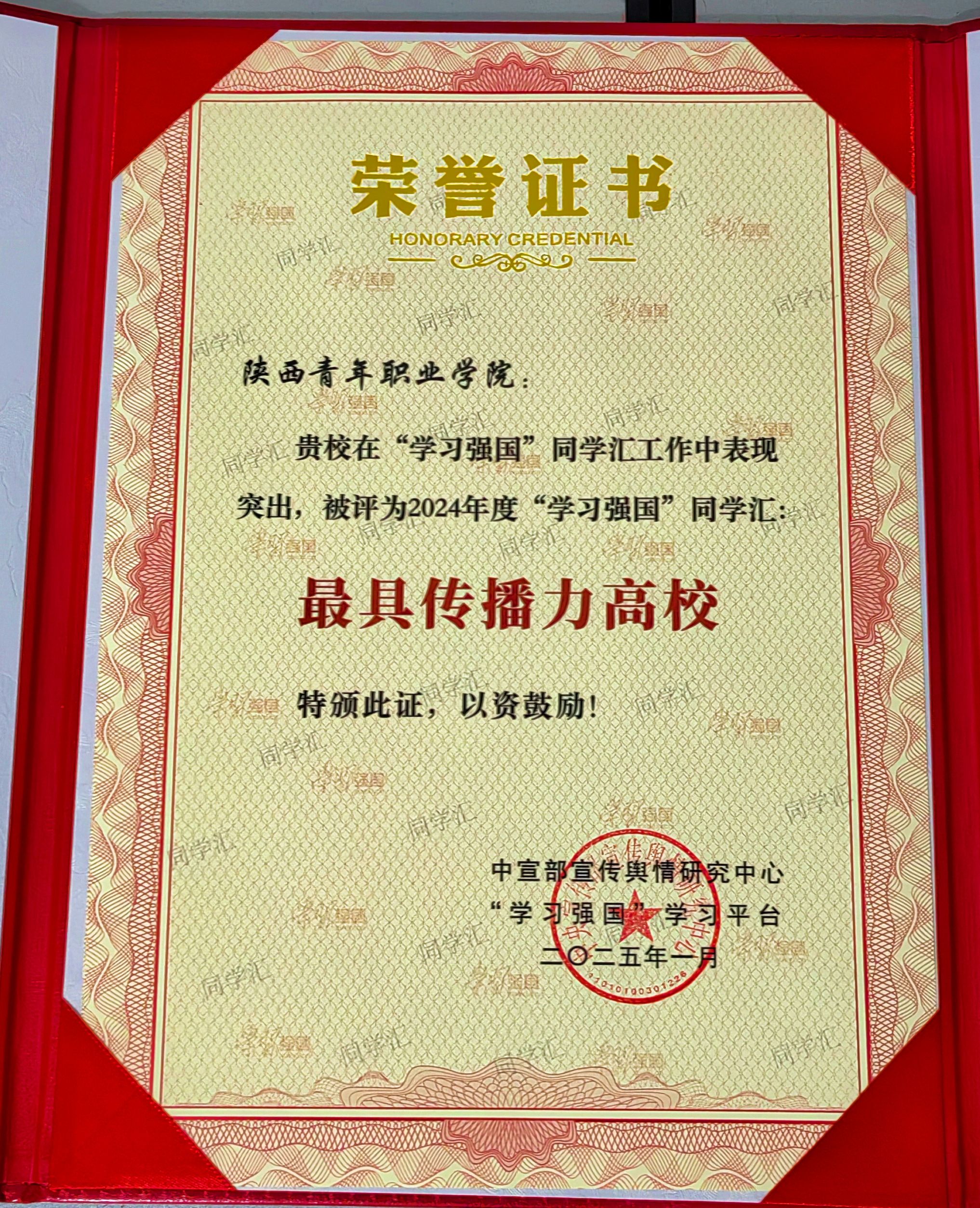 此次“学习强国”学习平台向全国52所高校授予了“最具传播力高校”荣誉称号,其中,陕西省有8所高校,点点官网是全省唯一获此项殊荣的高职院校。2024年12月,“学习强国”学习平台从2024年同学汇上线的5万多件作品中精选400件进行集中展示,最终评选出100个年度人气作品(高校)、100个年度人气作品(个人)和50个2024年度高校融媒团队,点点官网的“思政课引领我成长”“阳光洒满校园”等2件作品分获人气作品高校奖和个人奖。