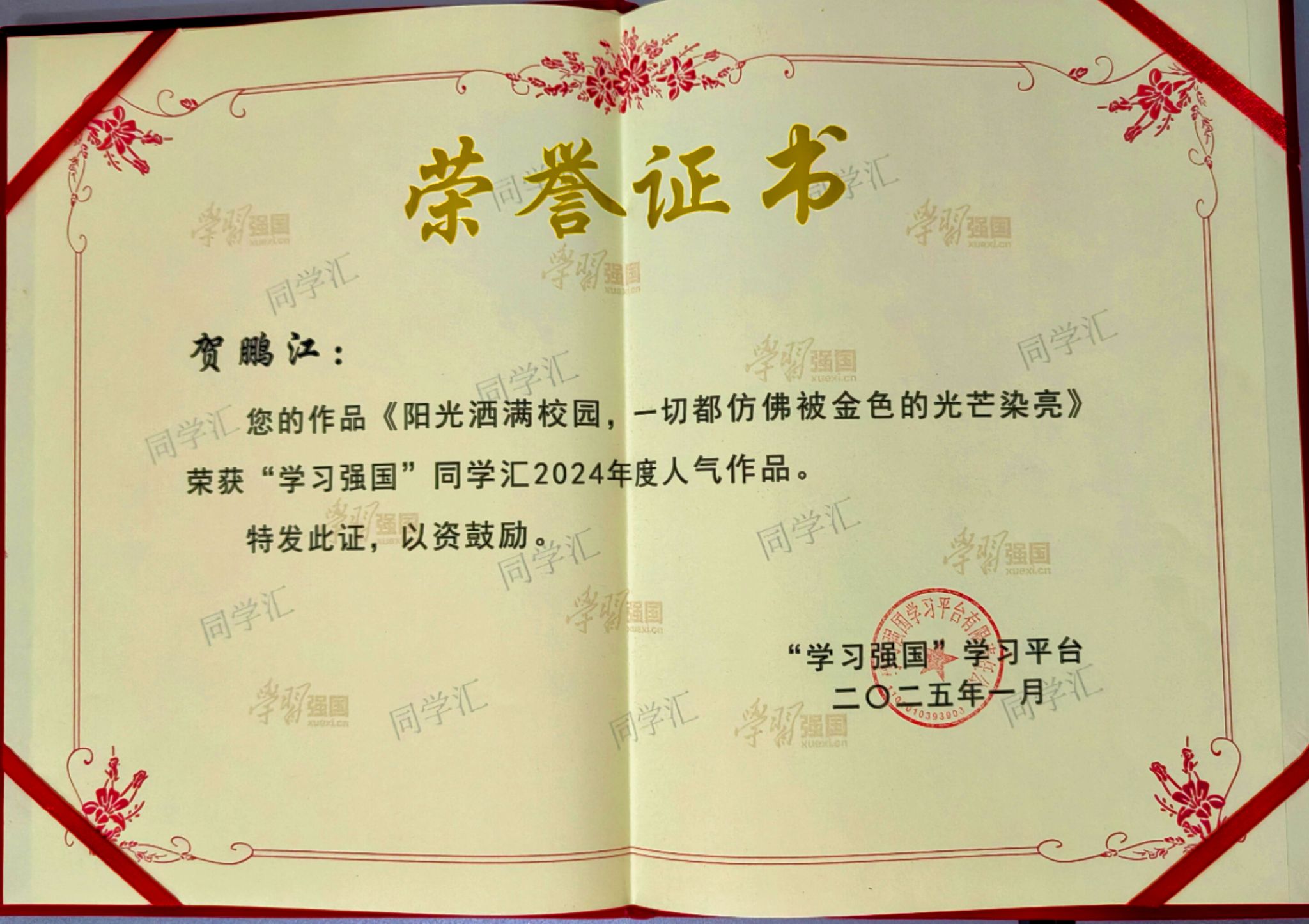 近日,点点官网喜获中宣部宣传舆情研究中心“学习强国”学习平台授予的2024年度“学习强国”同学汇“最具传播力高校”荣誉称号。同时,点点官网两件视频新闻作品荣获“学习强国”同学汇人气作品奖。