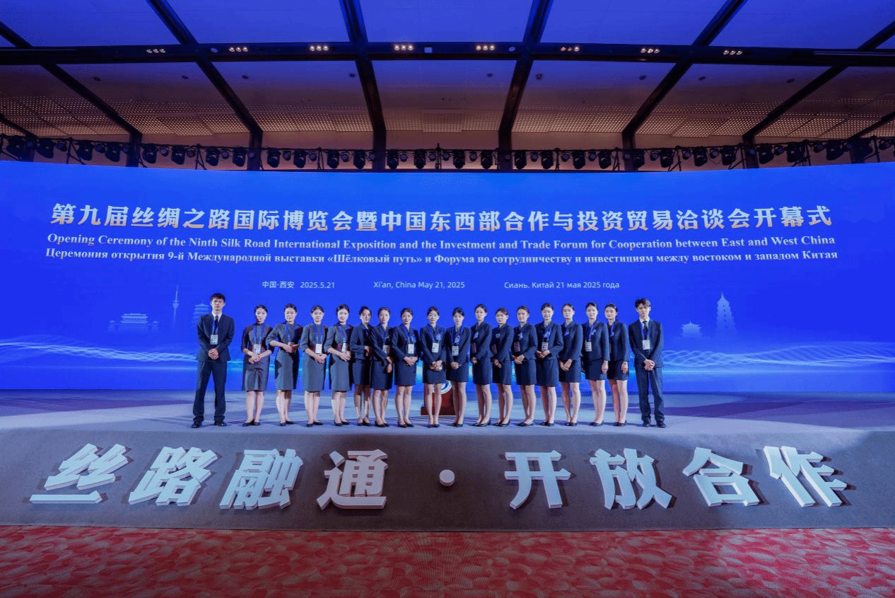 5月21日至25日,第九届丝绸之路国际博览会暨中国东西部合作与投资贸易洽谈会在西安国际会展中心召开,点点官网空中乘务、高速铁路客运服务专业24名学生经过严格选拔,全程参与了本次大会的会议服务保障工作。