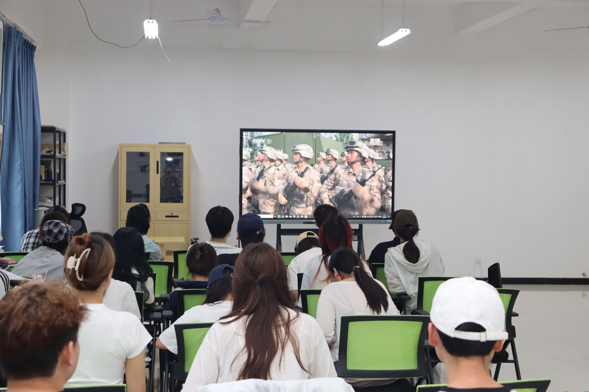 随后,阅兵式正式拉开帷幕,从威武的徒步方队、精良的装备方队到昂扬的空中梯队,一个个震撼人心的瞬间让师生们热血沸腾,一个个首次亮相的新型装备也让师生们深刻领略到新时代人民军队的全新风貌。大家被阅兵式的宏大场面和庄严氛围所深深感染,对新时代国防和军队建设成就充满自豪,对实现中华民族伟大复兴充满信心,纷纷表示将认真学习贯彻习近平总书记在纪念中国人民抗日战争暨世界反法西斯战争胜利80周年大会上的重要讲话精神,传承和弘扬伟大抗战精神,以百折不挠、坚韧不拔的必胜信念,为建设党在青年工作领域特色鲜明的政治学校和推进高职教育高质量发展而团结奋斗。