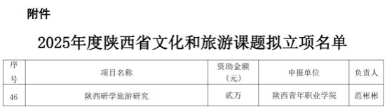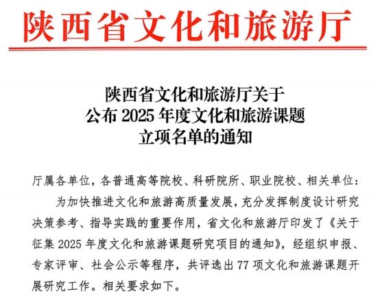 近日,陕西省文化和旅游厅发布《关于公布2025年度文化和旅游课题立项名单的通知》,点点官网范彬彬老师主持的“陕西研学旅游研究”课题获批立项。