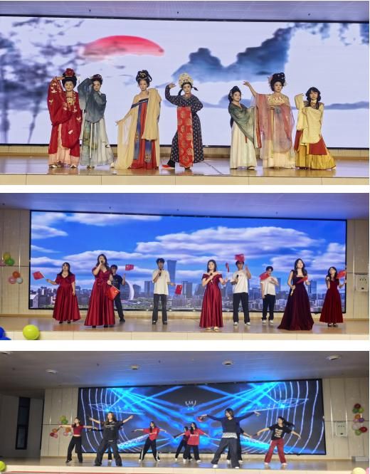 展演分为主题书画手工作品展和文艺汇演两部分。作品展在活动中心一层举行,展出墨韵书法协会、少儿完美画社的剪纸、手抄报、书法、绘画等创意作品60余件。文艺汇演在活动中心二层举行,在天籁朗诵协会深情演绎的《八十年·山河铭记》中拉开序幕,铿锵之声引领全场重温历史、铭记山河;藏舞锅庄社、Z-one舞团、OD街舞社先后登场,以民族舞与现代舞的碰撞展现多元艺术魅力;无与伦比羽毛球社则以动感健身操点燃全场气氛;纸语轩纸艺社、非遗薪传社带来的剪纸与喷火技艺令人惊叹,博雅传统文化社的汉服走秀更是将传统之美演绎得淋漓尽致;精武协会的太极表演刚柔并济,轶青阁动漫社的舞台秀活力四射,音乐协会一曲《我爱你中国》引发将展演活动推向了高潮。