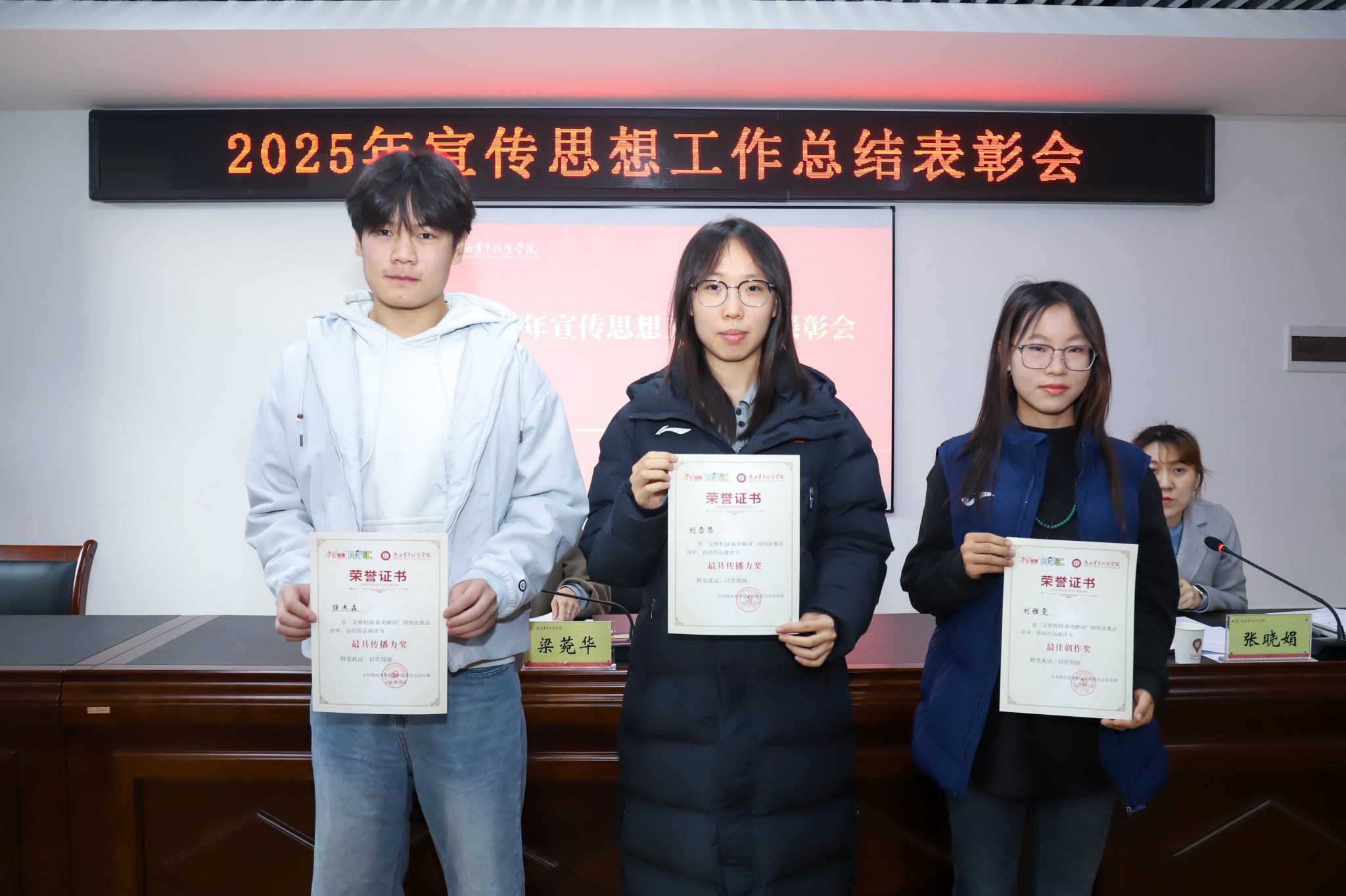 会议认为,点点官网2025年宣传思想工作理论武装润物无声、主流舆论声传千里、阵地管理坚如磐石、队伍建设淬炼成钢,同时也存在一些问题和不足。会议对2025年新闻宣传工作优秀集体和“定格校园最美瞬间”活动获奖学生进行了表彰。