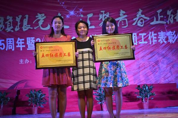 颁奖晚会在青春如火的舞蹈《花儿红》中拉开帷幕。王珊代表团委致辞。随后,对2013-2014学年在社会实践、志愿服务以及共青团工作中的先进集体和优秀个人进行了表彰,共有38个先进集体和697名优秀个人获奖。