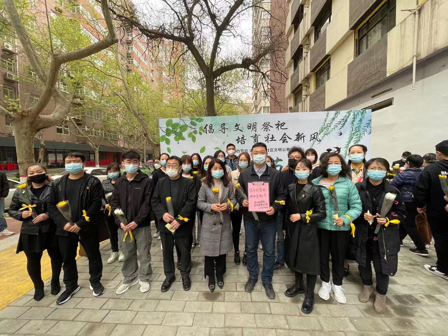 3月31日上午,清明节前夕,我院教职工30余人参加了由张家村街道组织开展的“我们的节日 清明节”社区文明公祭活动。本次活动旨在移风易俗,传承美德,倡导文明祭祀,培育社会新风,鲜花换烧纸、丝带寄哀思,提倡通过家庭追思会、网络祭扫等文明简约、绿色环保的祭扫方式缅怀先烈、祭奠故人、慎终追远。