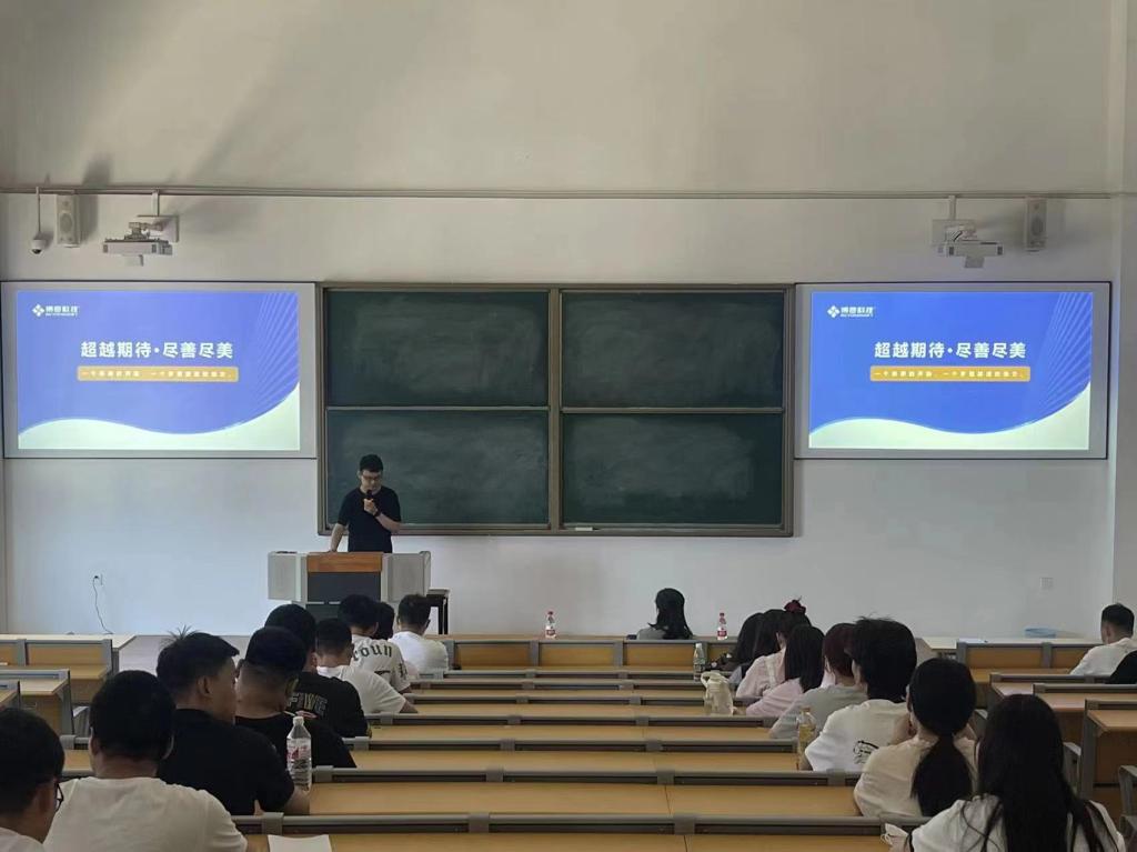 本次活动由博彦科技交付经理张彬和招聘主管杨婷分场宣讲,通过企业宣传片向全体同学形象生动的展示了博彦科技的发展历程和工作环境,并分别从博彦科技的发展历程、工作使命、公司愿景以及招聘岗位等方面进行了介绍。