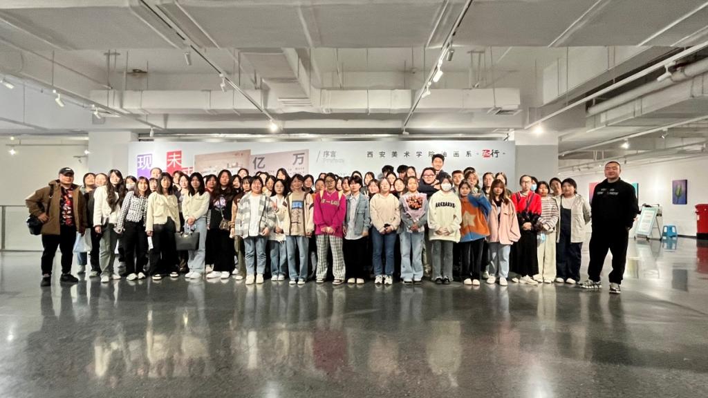 4月14日下午,艺术教育系2021级、2022级美术教育专业学生在教师宫丰敏、赵子瑜的带领下赴西安美术馆、亮宝楼参观手迹与心性-纸上绘画全国邀请展、西安美术学院油画系2022届本科毕业创作甄选展、西京学院设计艺术学院美术领域硕士研究生专业实践作品展。