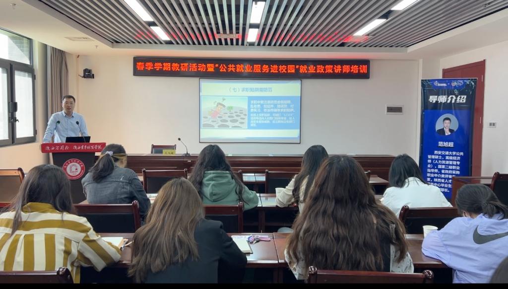 5月22日,学院就业指导师资培训讲座于长安校区举办,陕西省人才交流服务中心毕业生就业工作部副部长、国家二级职业指导师、省政府采购职业中介类评审专家范旭超应邀授课,学院职业生涯规划与就业指导教研室全体教师参加培训。