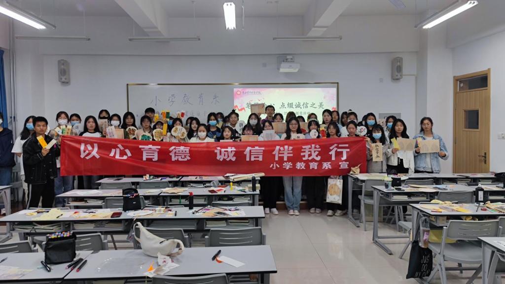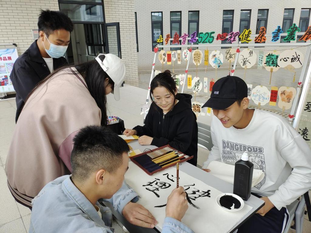 在“5·25”心理健康日之际,为进一步将“育德”与“育心”相结合,加强学生心理健康教育,引导学生形成健康乐观、积极向上的学习生活态度,促进学生身心和谐发展,小学教育系二级心理健康辅导站在长安校区举办了“笔墨绘心,点缀诚信之美”心理书法创意活动,活动受到同学们的积极响应,院长刘瑞明、副院长韩凯军现场参观指导并与同学们合影留念。