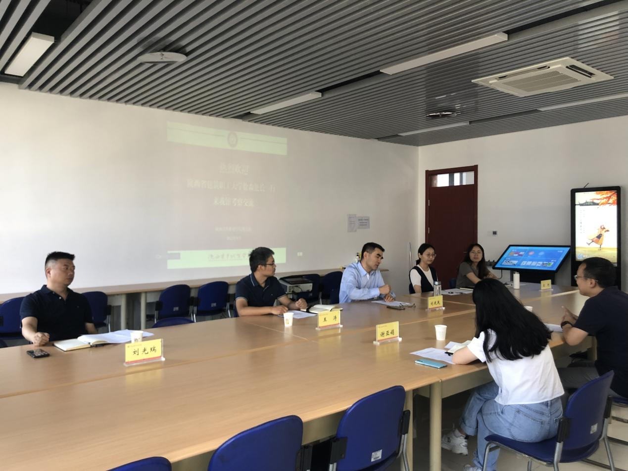 9月14日上午,陕西省建筑职工大学教务处处长徐森、图书馆干事谢亚娟一行2人来到我院图书馆,就图书馆基本架构及各项业务工作等方面进行了交流互鉴,图书馆副馆长(主持工作)刘延民主持会议。