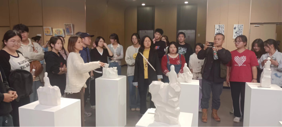 随后,由各专业老师依次讲解了建筑与艺术设计学院各专业的2023届毕业设计作品,并具体阐释了作品细节及创作思路。观看展览结束后,贾主任及各专业教师带领同学们实地参观了学校的专业实训室,并做了详实的介绍。