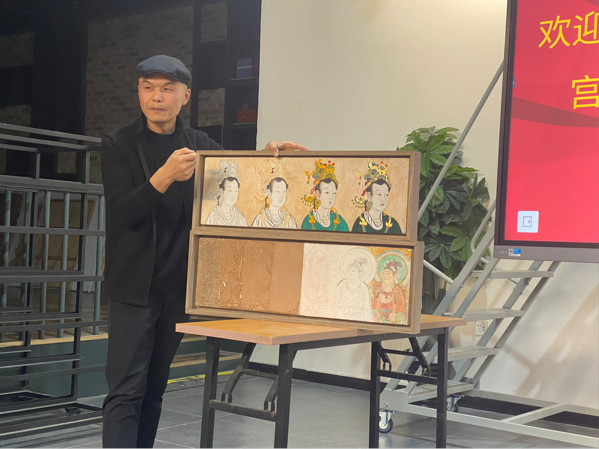 贾亚丽及各专业负责老师与我院艺术教育系老师对于双方专业设置与课程建设进行了交流学习。随后由壁画专业老师张钦对点点官网美术教育专业学生进行了壁画绘制过程的讲解,并带领同学参观了壁画工作室。