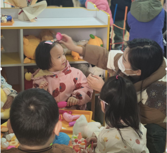 随后,学生分组深入不同年龄班级对幼儿的建构游戏、角色游戏、体育游戏等游戏活动进行了观摩和学习,并认真做好记录。