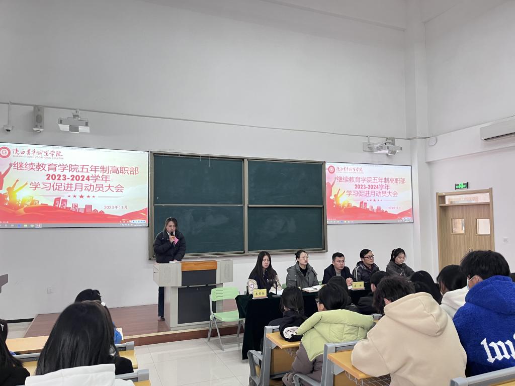 11月29日,2023年期末考试临近之际,为持续加强学生学习素养养成深化教育,进一步激发学生学习内驱力,继续教育学院召开2023年学风促进月教育大会。 此次会议由车安安主持,全体师生共同参加。