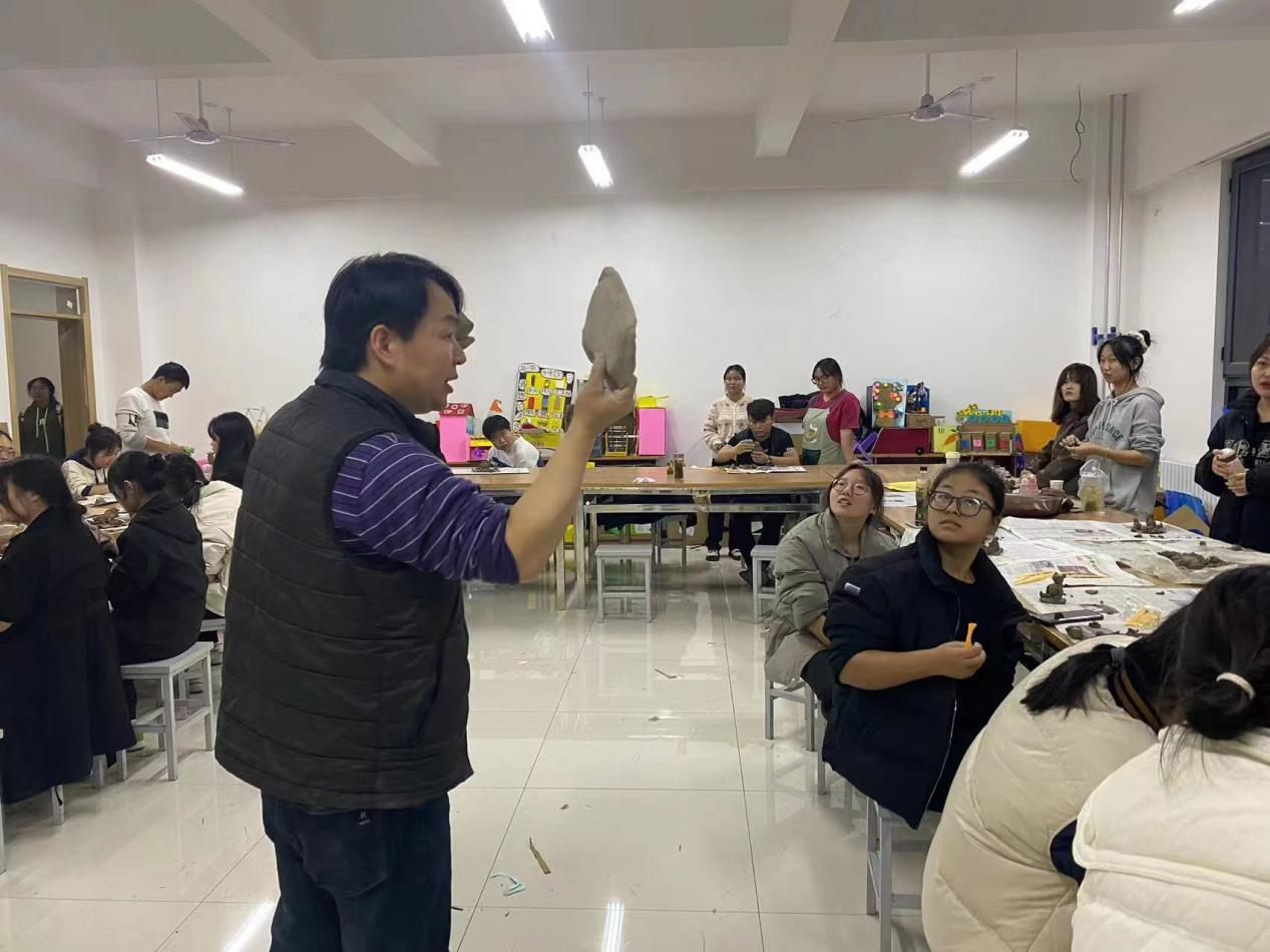 刘宏强首先讲解了中国传统泥塑的发展历史和文化意蕴,介绍了不同风格、不同造型手法的泥塑作品。郭航对泥塑制作的基本手法和泥材料的特性做了详细的介绍,并鼓励同学们提高对中国传统文化的鉴赏能力,通过泥塑作品体会中华文化的魅力。