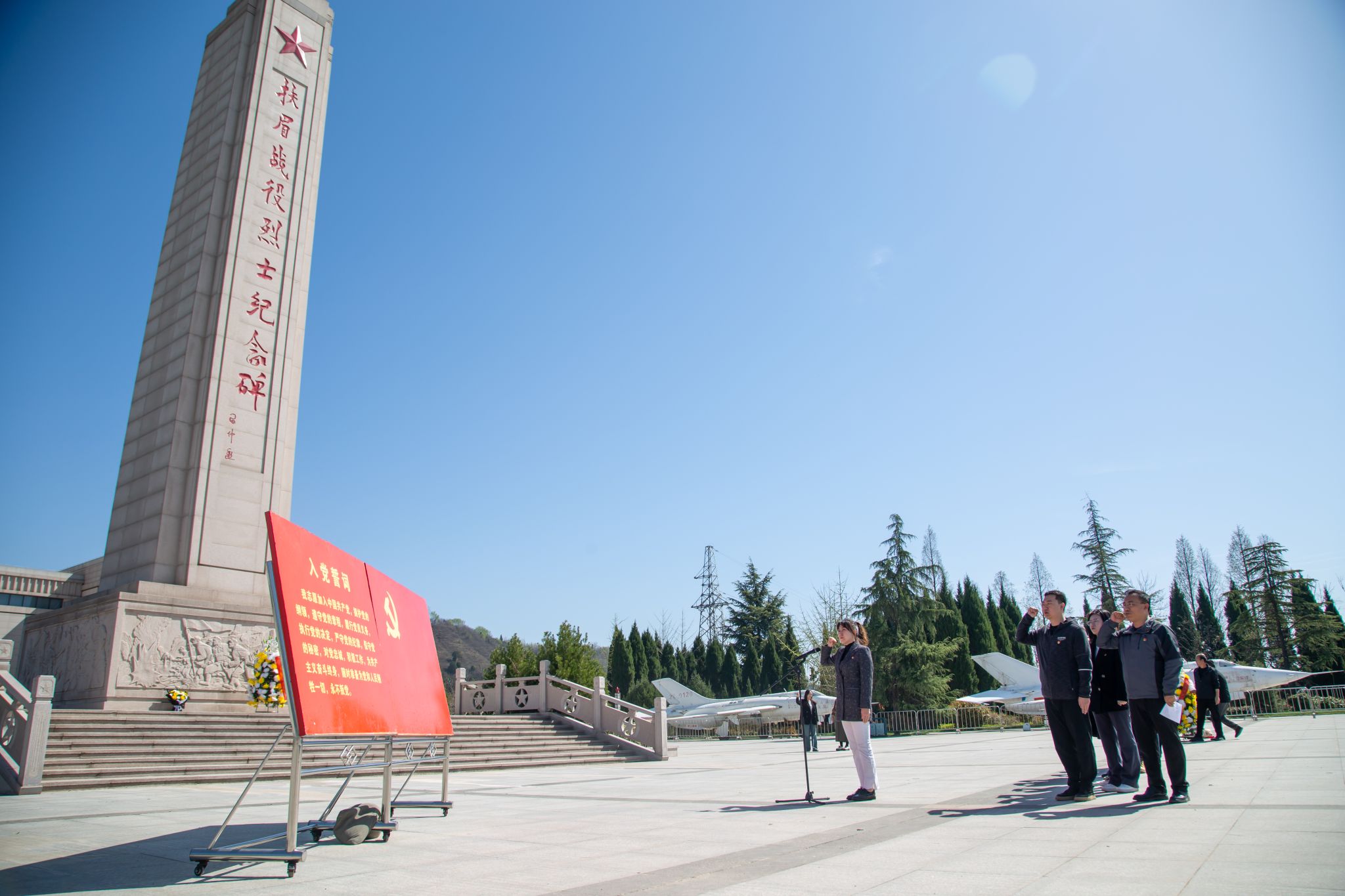 在扶眉战役纪念馆,支部党员同志们集体面向扶眉战役烈士纪念碑肃立默哀、敬献花篮,表达对革命先烈的缅怀之情。党支部书记张晓娟领誓,全体党员面向鲜红的党旗重温入党誓词,表达传承红色基因、永葆政治本色的坚定决心。随后,在纪念馆内,全体党员一边聆听讲解员的讲解,一边参观丰富的历史资料及烈士照片、遗物等,深刻了解扶眉战役发生的历史背景、艰苦历程以及解放军战士浴血奋战的光辉事迹,切身感受革命先烈不畏艰险、英勇顽强的奋斗精神和冲锋在前、不屈不挠的英雄气节。
