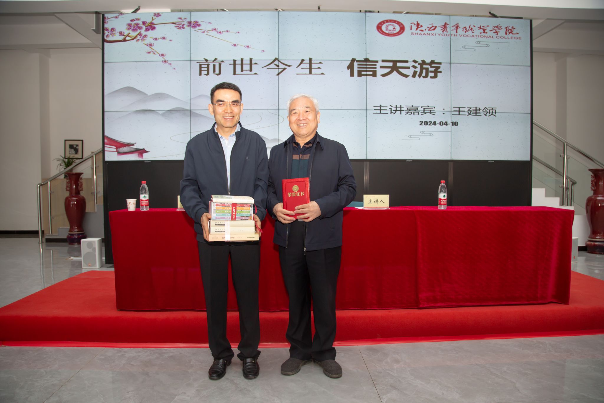 讲座结束后,王建领先生向我院图书馆赠送了他的系列著作——《留住祖先的声音》《了不起的陕北话》《陕北民歌300首》《陕北话中话》《信天游说》《陕北之最》《无定河》《山野撷英》。这些作品凝聚了王建领先生多年的研究心血,对陕北的自然风光、历史文化、民俗风情等方面进行了全面而深入地描绘,具有很高的学术价值和艺术价值。