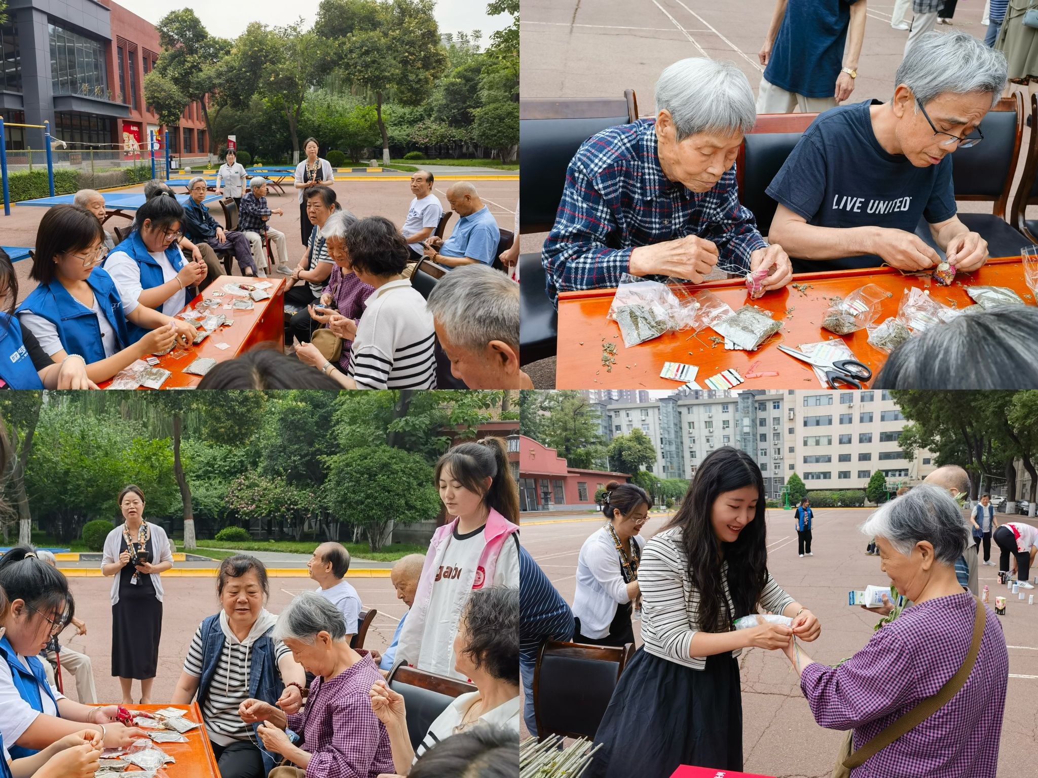 在香包DIY区域,志愿者们帮助大家穿针引线,老同志们则给年轻人表演飞针走线的技巧,一边缝着香包,一边分享着关于端午的趣事,气氛温馨又和谐。