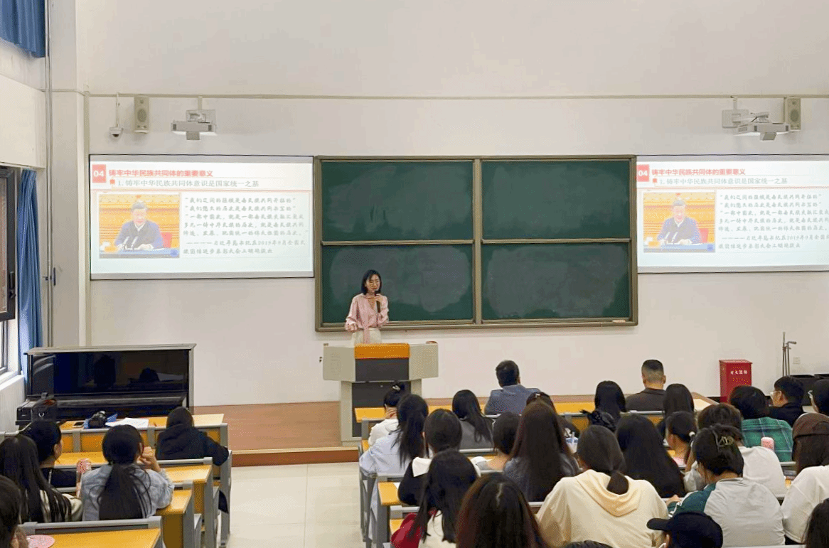 杨亚男以“深刻理解铸牢中华民族共同体意识的重大意义”为主题,从“党的民族政策与新中国民族工作的历史发展”“铸牢中华民族共同体意识与新时代民族工作重大成就”“高度重视当前民族工作面临的风险和挑战”“铸牢中华民族共同体的重要意义”四个方面,深刻诠释了铸牢中华民族共同体意识的重要性、必要性和先进性。从历史的长河中追溯各族人民共同创造灿烂中华文化的历程,到当今时代共同团结奋斗、共同繁荣发展的生动实践,通过一系列生动的案例,展示了各民族在共同奋斗中形成的深厚友谊和共同命运,引导学生认识到中华民族是一个命运共同体,各族儿女团结起来才能凝聚起中华民族伟大复兴的磅礴力量。