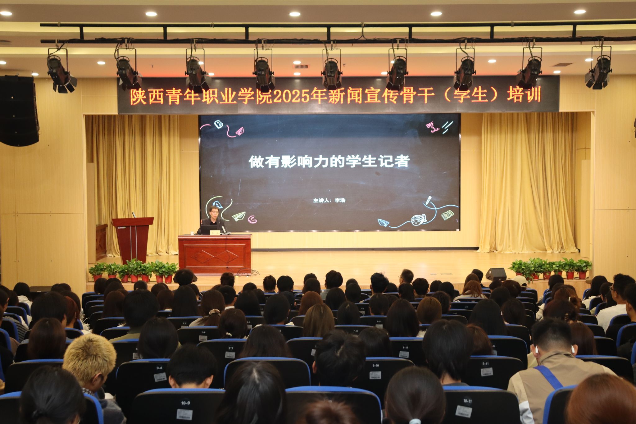 为进一步提升学生新闻素养,帮助学生掌握专业传播技巧,培养有影响力的校园记录者,10月15日,2025年新闻宣传骨干(学生)培训报告会在长安校区举行。党委宣传部副部长曹宇刚主持报告会,校团委副书记薛江泉以及200余名来自校青媒工作室、校团委、各系(院)的通讯员、学生骨干以及新媒体工作人员参会。