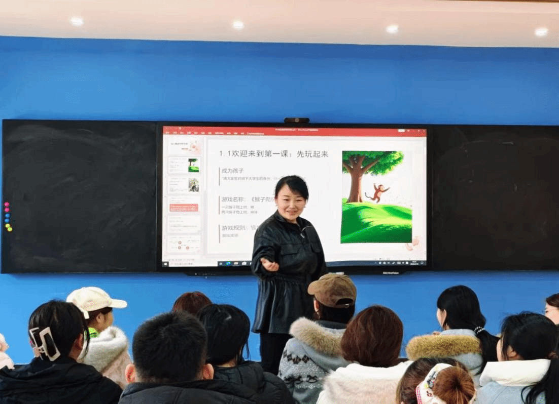 本次班会打破传统说教式课堂的刻板模式,黄英采用“游戏破冰—复盘梳理—互动探讨”三段式流程,让职业规划主题班会鲜活接地气、走心有实效。活动伊始,黄英带领同学们开展团体游戏“猴子爬树”,快速拉近师生距离,同时巧妙融入学前教育专业核心知识,引导学生沉浸式感悟幼儿游戏设计的教育理念与育人价值,直观领会幼教行业“玩中学、学中悟”的核心精髓。