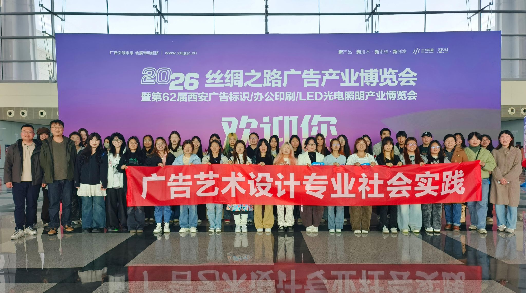 为深化产教融合,帮助师生精准把握广告行业发展脉搏,3月27日,文化传媒系广告教研室组织广告艺术设计专业40名师生,参加了由陕西省广告协会主办的2026丝绸之路广告产业博览会暨2026西安广告展。