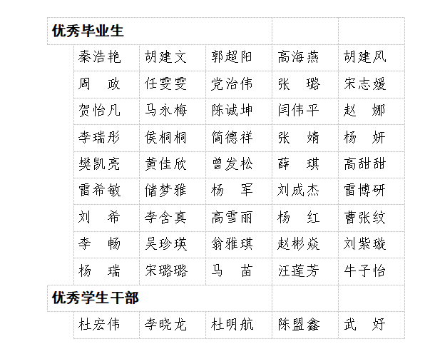 根据《陕西省教育厅关于评选2022届普通高等学校优秀毕业生和优秀学生干部的通知》和《taptap点点体育关于评选推荐2022届省级优秀毕业生和优秀学生干部的通知》文件要求,经学生本人申请,各系复核,学生处审核,学院优秀毕业生(优秀学生干部)评审工作领导小组审议,现将拟推荐的2022届省级优秀毕业生和优秀学生干部进行推荐前公示,名单如下: