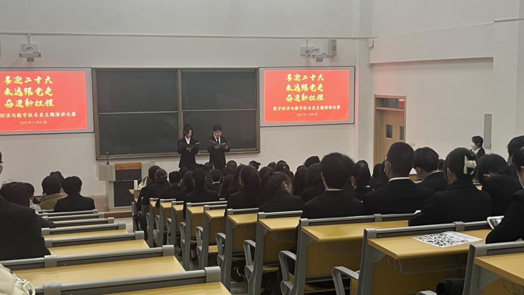 11月21日,数字经济与数字技术系在长安校区举办“喜迎二十大,永远跟党走,奋进新征程”主题演讲比赛。