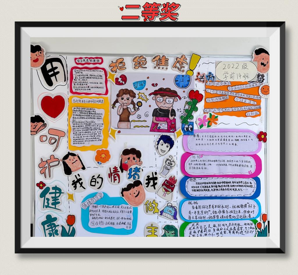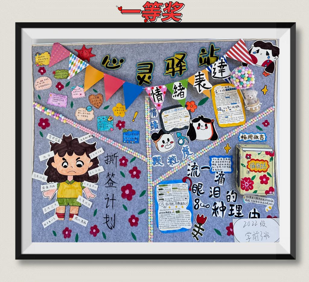 2022级学前教育专业共计15个班级参与本次活动,心理角创建活动内容涵盖广泛,主要有悦纳自我、情绪表达和管理、心理健康小贴士、生命的意义等心理健康知识。经过指导老师和班级学生代表共同评选,2022级学前教育专业3班作品获得一等奖;2022级学前教育专业15班等3个班级获得二等奖;2022级学前教育专业7班等5个班获得三等奖。