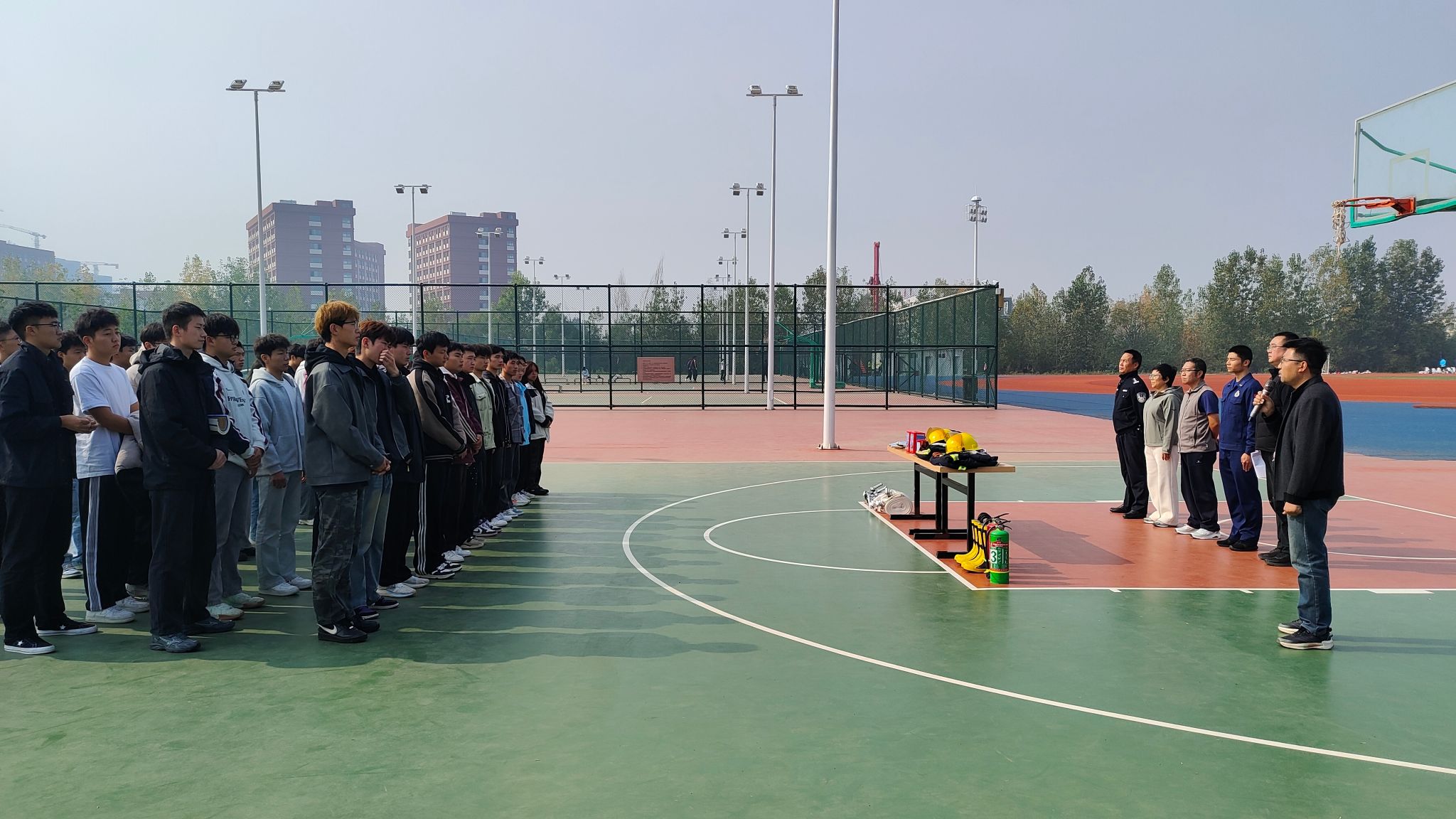 龚成介绍了举办此次培训活动的目的:此次培训对进一步加强消防安全宣传教育工作,壮大校园消防力量,增强大学生的消防安全意识,推进平安校园建设具有重要意义。刘国强对学生志愿消防队队员提出要求:希望同学们珍惜学习机会,提高政治意识和安全意识,勤学勤练,确保安全。