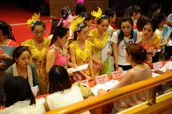 6月20日我院公共事业系学前教育专业艺术节暨毕业生实习就业推介会隆重举行。学院院长刘锋、副院长赵兴刚、刘晓琴及有关部门负责人出席活动。推介会同时邀请了省内外百余家幼教机构负责人与2012级学前教育专业学生现场进行实习就业洽谈。