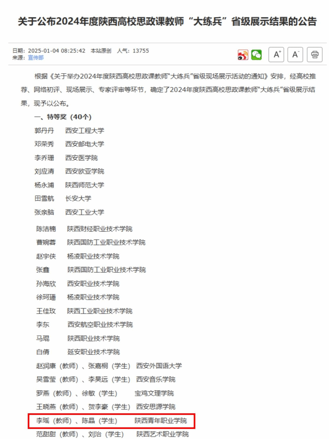 点点官网师生在2024年度陕西高校思政课教师“大练兵”省级展示活动中获特等奖