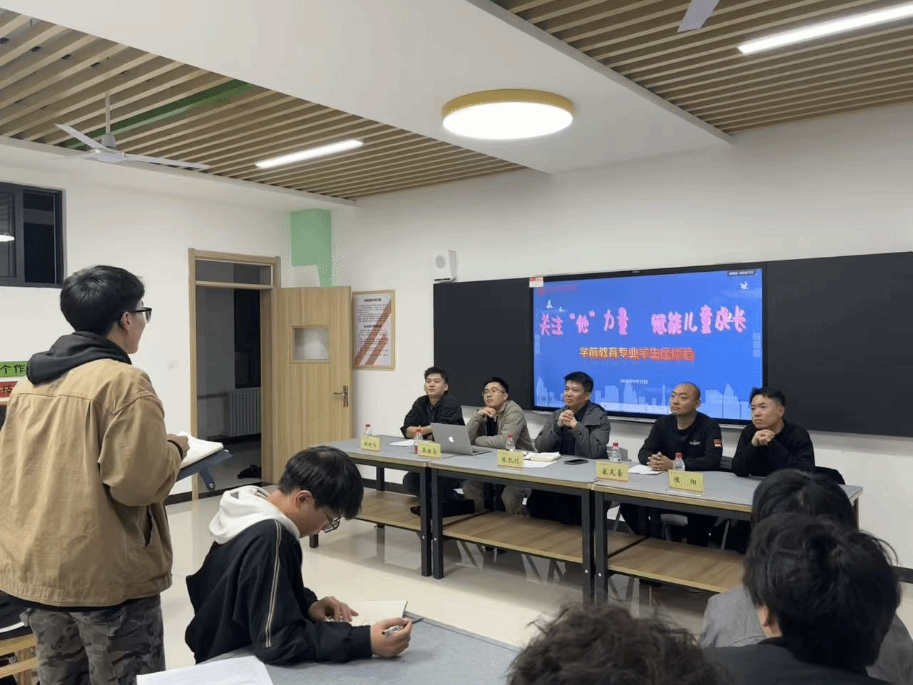 9月22日,学前教育系举办主题为“关注‘他’力量 赋能儿童成长”的学生座谈会,特邀西安市浐灞第二幼儿园总务主任谢晓鸣(2013届毕业生)、周至县竹峪镇丹阳幼儿园园长吴佳豪(2016届毕业生)、西安航天城第十四幼儿园保教干事宋天豪(2017届毕业生)、西安曲江悦府幼儿园体能教师陈阳(2022届毕业生)作为优秀校友代表到场,2024级、2025级在校男生参加,系党总支书记、副主任朱凯利主持活动。